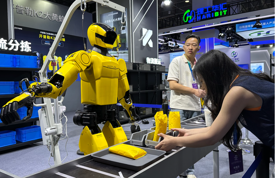 Kepler’s humanoid robot K2 Hornet put forward the slogan ‘1 hour of charging, 8 hours of continuous work’ and demonstrated its application scenarios in logistics sorting and handling on site, emphasizing the robot’s battery life and work efficiency.